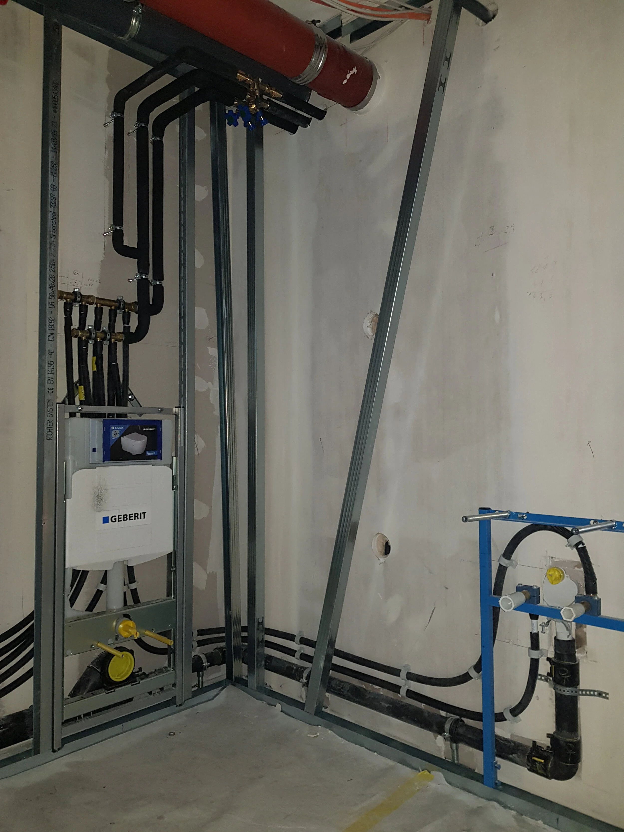 sanitary collector, wall-mounted toilet, above-counter basin with future furniture to adapt - at wheelchairs standards