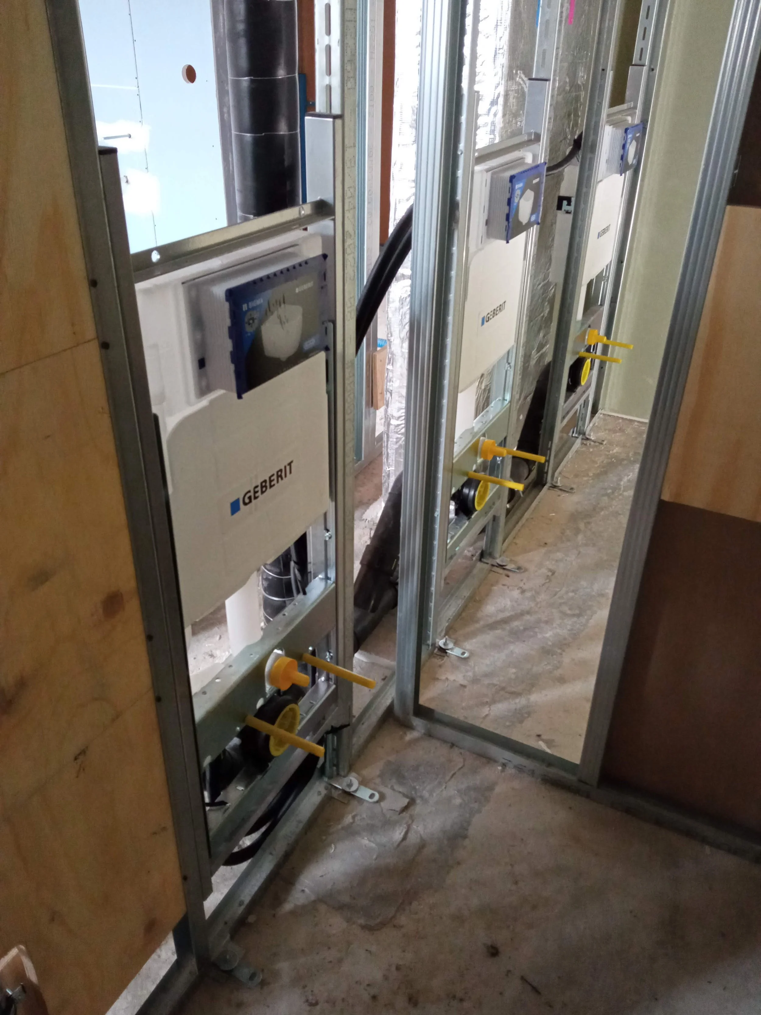 nourrice de distribution, cadre Geberit, attente pour lavabo avec meuble suspendu - normes PMR